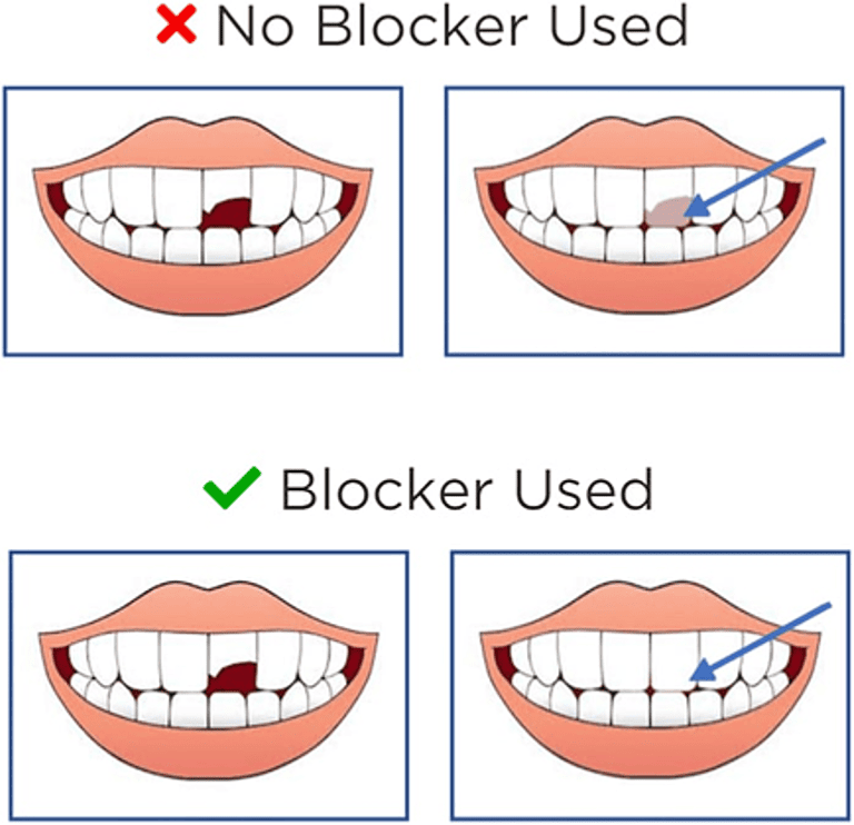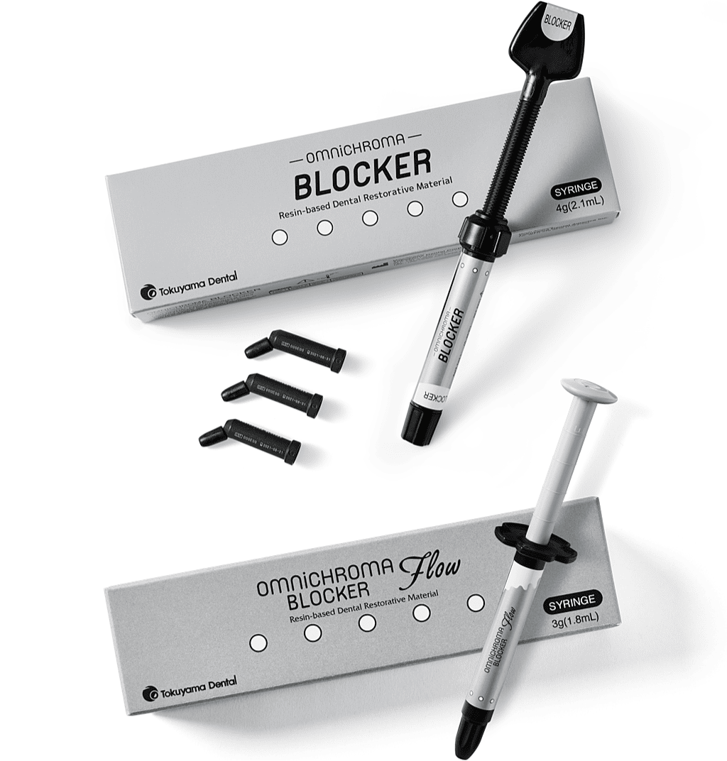 OMNICHROMA BLOCKER & OMNICHROMA BLOCKER Flow are supplemental packable or flowable products that can be used interchangeably as opaquing material to mask discoloration, stains, or build a lingual shelf in cases where not enough tooth structure is present, ensuring optimal shade matching where needed.